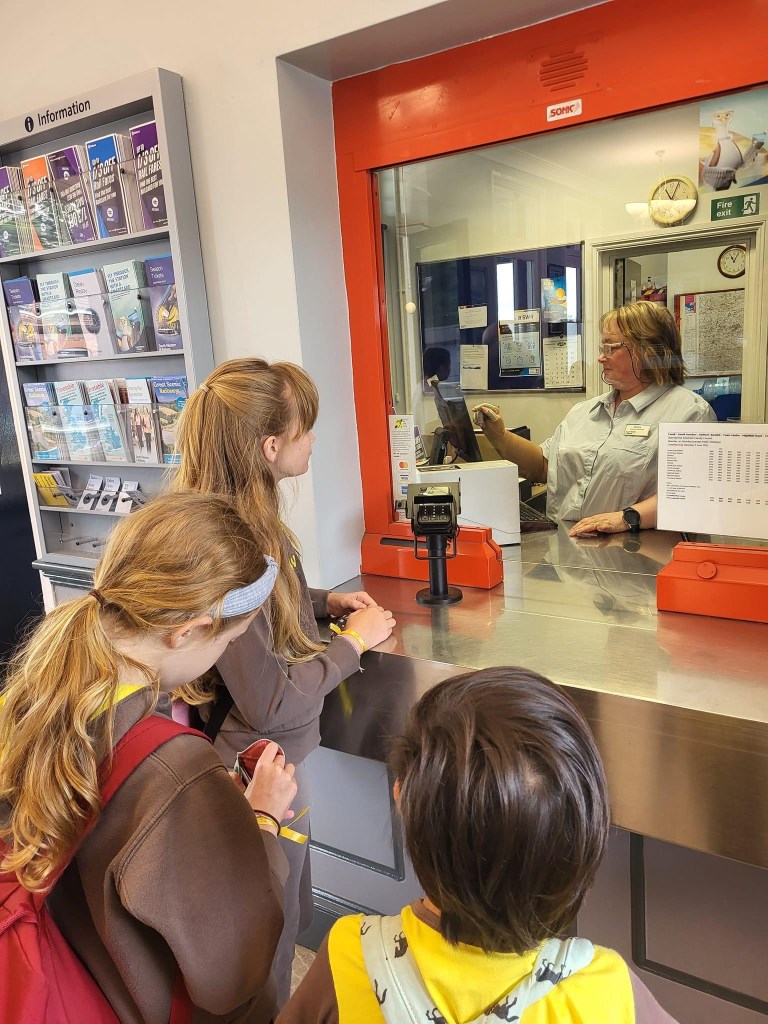 The South Western Railway community ambassador (and a Brownie mum from Feniton!) Stacey met us off the bus and explained all about how to keep safe on a Railway station and train. Where you can get help even if there are no staff present at the time. We had fun either buying tickets at the machine or at the ticket office.